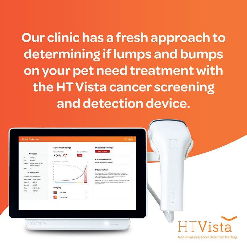 We are extremely proud to be among the first and very few veterinary clinics in the UK to offer HT-Vista screening; the only non-invasive diagnostic device specifically designed to assess lumps and bumps in dogs. This groundbreaking technology allows us to evaluate whether a lump is likely benign or may require further investigation, all without the need for needles, sedation, or invasive procedures.