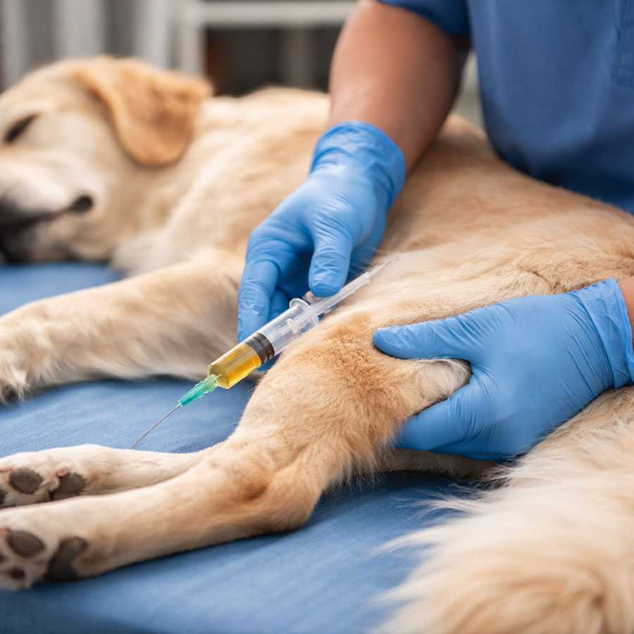 The procedure is performed under a short general anaesthetic for safety and comfort. A blood sample is collected from your pet and processed in our on-site laboratory to concentrate the platelets. This enriched plasma is then injected directly into the affected area to stimulate healing.
